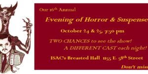 The Hyde Park Community Players Are Thrilled to Announce Our 2025-2026 Season Information about auditions will be posted here and on our Facebook page An Evening of Horror and Suspense 2025 directed by Sasha Austin and Susie Swanton October 24-25, 2025, 7:30pm Breasted Hall, ISAC 1155 E 58th Street Audition Information Six Degrees of Separation by […]